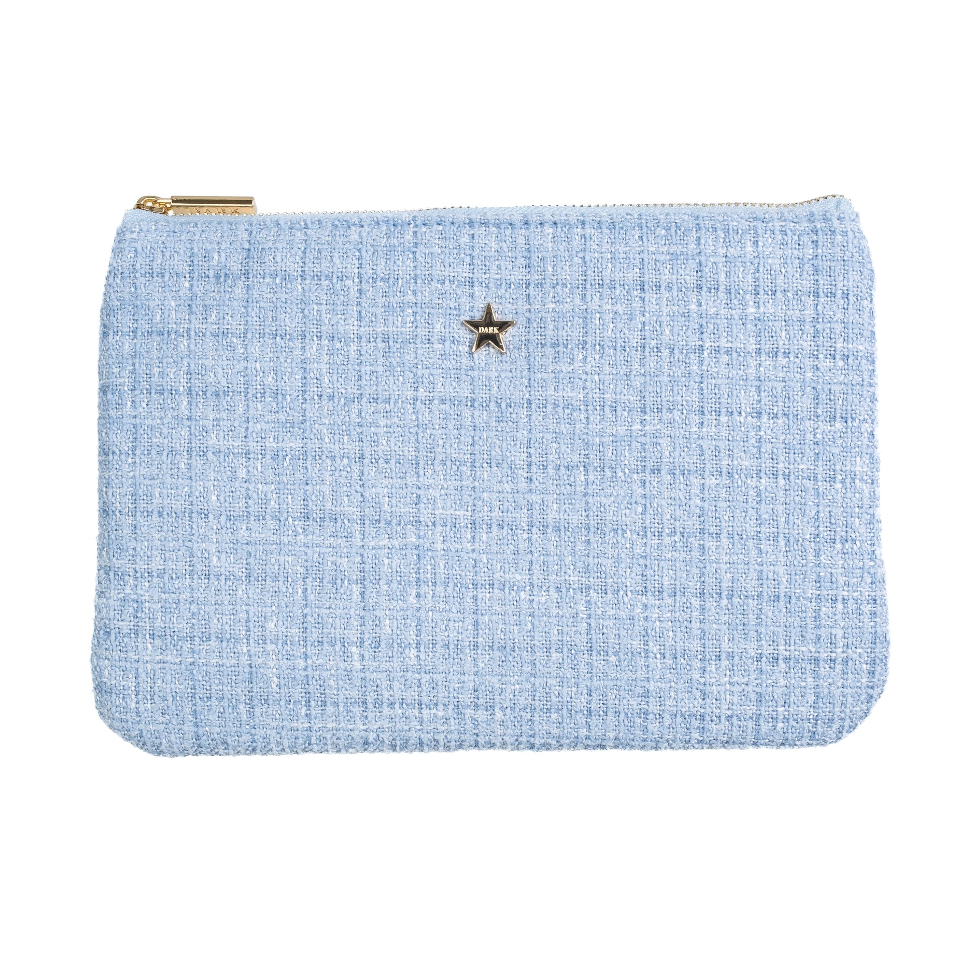 Tweed Mini Pouch er en stilfull og kompakt veske laget av klassisk tweedstoff. Med en størrelse på 13 x 9 x 1,5-2 cm er denne mini-pungen perfekt for å oppbevare små gjenstander som kort, nøkler eller sminke. Den er dekorert med solide detaljer i sinklegering, som gir et luksuriøst og tidløst preg. Perfekt for både hverdagsbruk og reise.
