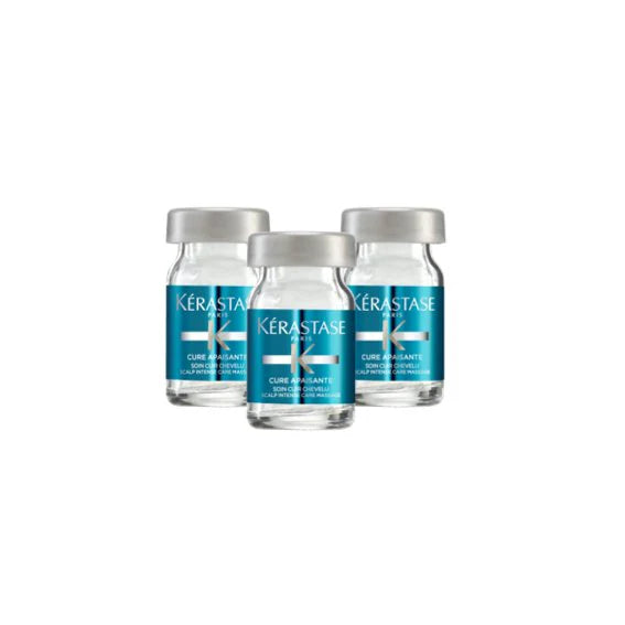 Kerastase Cure Apaisante Anti-Inconfortes er for en sensibel og/ eller irritert hodebunn. Produktet gir hodebunnen en beroligende og lindrende effekt ved å motvirke kløe og irritasjon. Inneholder 12 stk 6 ml flasker som du skal bruke morgen og kveld 3 ganger i uken i 4 uker. Påføres tørt eller håndkletørt hår.