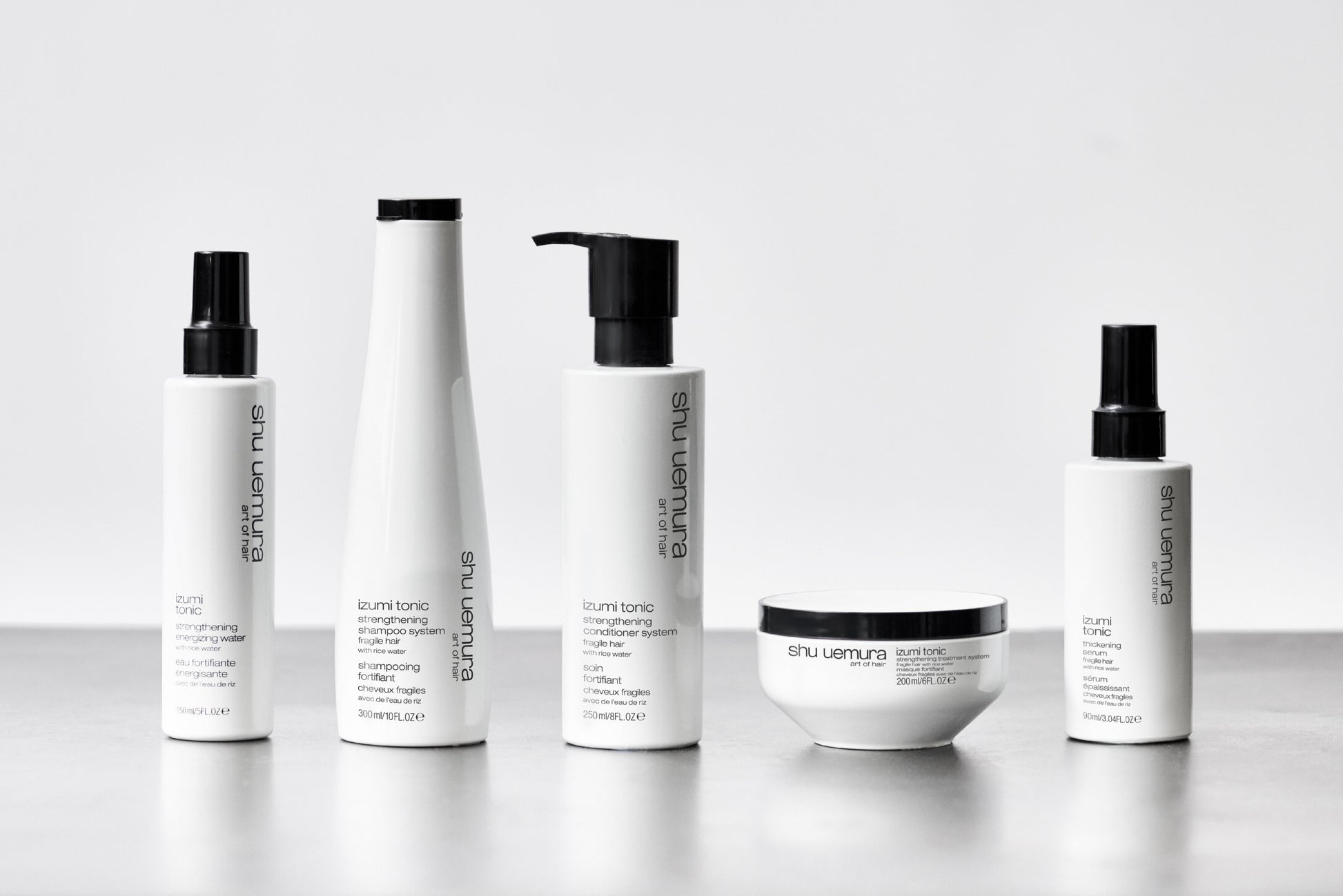 Izumi Tonic Conditioner er en balsam fra Shu Uemura. Izumi - fontene på japansk - tonic styrkende energigivende vann er inspirert av yu-su-ru, den eldgamle japanske tradisjonen for hårskjønnhet ved å bade håret i risvann. Denne hvite lette balsam, brukt sammen med izumi tonic-kur, styrker, tykner, fukter og gir håret glød. Håret er opptil 30 ganger sterkere*, tykkere med økt diameter, beskytter mot brudd, 91 % mindre flisete tupper*. Håret er mykt, glatt og fult av glød.